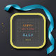 These awesome gamer theme birthday party plates with a vintage arcade game vibe feature retro lettering on a dark grey and white dot matrix grid. "Happy Birthday [Name]" appears in retro digital lettering, with "Level [age]" beneath.