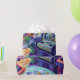 Retro arcade machines are nestled among vibrant planets and stars. The scene combines nostalgia with a colourful cosmic theme.