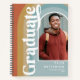 Retro graduation party year book featuring a boho vintage coloured rainbow arch backdrop, a photo of the grad, their name, the class year, and the school or college they attended.