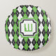 Argyle goes retro 8-bit with this green, grey, white, and black colour scheme which hearkens back to old-school arcade games. Customise this pillow with your initial to make it uniquely your own.