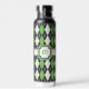 Argyle goes retro 8-bit with this green, grey, white, and black colour scheme which hearkens back to old-school arcade games. Customise the monogram with your initial to create a water bottle that is uniquely yours.