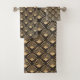 retro art deco black and sepia bathroom bath towel set with bath towel, wash cloth and hand towel. A rich geometric fan pattern design. This style looks great with black faucets, art deco posters and black rugs. If you want a rich contrast, try this style to refresh your bathroom decor. See the full collection at: https://www.zazzle.com/collections/119583979470664234