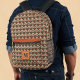 This colourful art deco style backpack features architectural arches in retro colours of blue-grey, orange, gold, and bluish black. Your initial monogram appears on a colorblock of the dusty teal blue grey on the pocket, and theh flap of the pocket is trimmed in dark orange. Make sure to type your initial in the Personalise section.