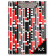 Add a custom-made clipboard to your school or office supplies. Retro Art Deco Red Black Abstract Pattern Design Monogrammed Clipboard. Monogram with your own initials. Great gift idea.