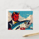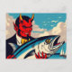 Retro Art Devil With A Tunafish on the Beach Postcard