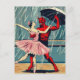 Retro Art Devil With Ballet Dancer in Rain Postcard
