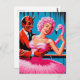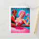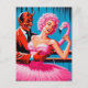 Retro Art Devil With Ballet Dancer Pink Flamingo Postcard