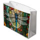 Immerse yourself in the enchanting allure of this elegant boho bohemian dragonfly artwork, where nature's elegance meets timeless artistry in a captivating stained glass style. Set against a floral garden backdrop, the dragonfly, adorned with delicate, wistful wings, gracefully flutters amidst a tapestry of vibrant flowers and foliage, embodying the harmonious blend of botanical organic forms and nature's splendour. Each element of the artwork, from the curling tendrils of the plants to the fine veining on the dragonfly's wings, is rendered with meticulous care, evoking a sense of nostalgia and wonder. This piece is a perfect homage to the elegance and intricacy of Art Nouveau design, offering a timeless window into a world where nature and art intertwine.