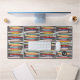 This backgammon desk mat has a retro atomic age design with lots of vintage colours, atomic and explosion symbols used on the game pieces. A super fun pattern for anyone that loves retro mid century modern designs and the game of backgammon. The pattern on this desk mat can be made small or larger.