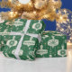 Atomic 50's inspired Christmas ornaments in antique white, on emerald green, with subtle distressed stripes and gold stars and green snowflakes.
