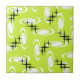 Retro Atomic Age Swirls Stars Pattern Chartreuse Ceramic Tile