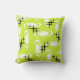 Retro Atomic Age Swirls Stars Pattern Chartreuse Cushion