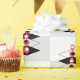Retro Atomic Art style design features red/white/black "baubles" centred between a four-dimension tower of geometric planes on grey colorblock background