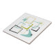 Add that splash of fun and colour to your kitchen or bathroom with this fabulous atomic era mid century modern ceramic tile. This design features abstract squares, starbursts, and a boomerang in the colours of avocado green, aqua blue, yellow, and black...so funky!