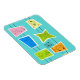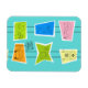 This Retro Atomic Kitsch Flexible Magnet features so many kitschy shapes and so many kitschy patterns. The Palm Springs inspired pattern features a turquoise background and oodles of wonderfully 1960’s line drawings. It’s almost too cute to describe! A vintage, pink shape features a retro trailer and car. A yellow block features a juke box. A blue shape features a sophisticated woman carrying a martini. A green space age shape holds a starburst clock and a classic television set. A lime block has a cat and a mid century modern record player. And an orange shape features a classic finned car and a roadside diner sign. What’s not to love?