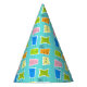 This Retro Atomic Kitsch Party Hat features so many kitschy shapes and so many kitschy patterns. The Palm Springs inspired pattern features a turquoise background and oodles of wonderfully 1960’s line drawings. It’s almost too cute to describe! A vintage, pink shape features a retro trailer and car. A yellow block features a juke box. A blue shape features a sophisticated woman carrying a martini. A green space age shape holds a starburst clock and a classic television set. A lime block has a cat and a mid century modern record player. And an orange shape features a classic finned car and a roadside diner sign. What’s not to love?