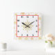 Retro Atomic Mid-Century Mod Red & Gold Starburst Square Wall Clock