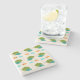 The coasters are gorgeous, a quality feel and heavy weight. They look like a precious archeological find. A rustic stone juxtaposed with a modern floral black and white print. I like the way the print goes slightly imperfect on the cut stone edges giving them a kind-of natural beauty.