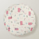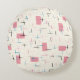 You'll be tickled pink by this Retro Atomic Pink Pattern Round Pillow. The design features a white background with gold speckles, pink rectangles, and black, turquoise, and pink slashes. The pattern is reminiscent of traditional mid century modern style. You're sure to enjoy our homage to the 1950s. Buy this today and be the coolest cat on your block.