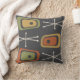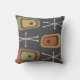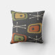 This mid century modern style art pattern has abstract geometric shapes that resemble old fashioned televisions, as well as sputnik starbursts which is a staple of 1950s designs. dark grey background with orange, green and yellow.