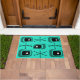 This mid century modern style art pattern has abstract geometric shapes that resemble old fashioned televisions, as well as sputnik starbursts which is a staple of 1950s designs.