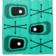 This mid century modern style art pattern has abstract geometric shapes that resemble old fashioned televisions, as well as sputnik starbursts which is a staple of 1950s designs.