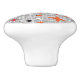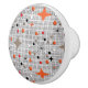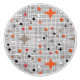 Stylish on trend pattern inspired by retro modern mid century designs with atomic starburst shapes on a white basket weave in tones of orange, grey, black and white