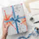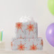 This retro wrapping paper has mid-century modern orange and black atomic shapes covering it. Good for many occasions.