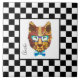 A cute ceramic tile of retro black and white chequerboard, and a colourful painted hipster bear. Personalise the tile with your name or text scripted along the side of the cat, if desired, or just leave blank. Use the tile as a trivet, or as an artful accessory for any room in your house. Perfect for gifting to your favourite animal-loving friends, or keep for yourself!