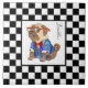 Retro B&W chequerboard, hipster pug, personalised Ceramic Tile