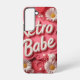 A vivid red floral backdrop with funky typography that radiates 70s sass and charm.