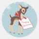 A Christmas sticker with a cute baby reindeer carrying a "Merry Christmas" sign. Coordinates with the "Retro Baby Reindeer" Christmas card collection.