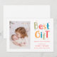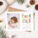 Celebrate your newest little blessing with this modern and playful birth announcement holiday card. Featuring a colourful “Best Gift” design and space for your baby’s photo, it perfectly captures the joy of a Christmas arrival. Ideal for sharing your newborn’s name, birth details, and first holiday greeting with loved ones. Add your custom text for a keepsake full of warmth and cheer. Personalise yours today.