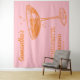 personalized retro bachelorette party tapestry in in bright pink and orange with a cocktail glass is perfect as a bachelorette party photo backdrop. Celebrate your bridal shower in style with the perfect cocktail party theme in bold pink and orange, the perfect theme for the nostalgic vintage 70s bride and her bridesmaids.