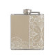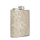 The flask itself is fine. It’s a cheap flask, obviously bought in bulk, however am prepared to overlook that. Given that it is a personalized item, I would have liked to have seen gift boxing instead of the generic packaging. Terrible printing, and/or quality. It’s a cheap, tacky vinyl. It is not cut straight and is also applied in a way that it is overhanging the bottom, causing the glue to catch on items and it will eventually roll and tear, damaging the wrap.