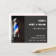 A red white and blue retro style barbershop pole photographic image on grey background. has an urban look that can be a great marketing tool for your barbershop or other mens' grooming business. Customise with company details on front and back.