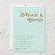 This retro beach | aqua traditional wedding invitation is perfect for your simple vintage, colourful tropical boho summer wedding. Its unique bohemian mid-century font gives this design a classic minimalist groovy hippie vibe. Suppose you're looking for a design that features bright, rustic coastal ocean colours for your creative 70's destination beach wedding. In that case, this product, and its coordinating wedding collection, are what you're looking for. Feel free to change the colour add your own artwork, graphics, or photos. If you have any questions about the design of this product, please feel free to reach out to us!