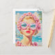 Retro Beach Girl with Floral Sunglasses Postcard