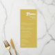 This retro beach | gold wedding dinner menu is perfect for your simple vintage, colourful tropical boho summer wedding. Its unique bohemian mid-century font gives this design a classic minimalist groovy hippie vibe. Suppose you're looking for a design that features bright, rustic coastal ocean colours for your creative 70's destination beach wedding. In that case, this product, and its coordinating wedding collection, are what you're looking for. Feel free to change the colour add your own artwork, graphics, or photos. If you have any questions about the design of this product, please feel free to reach out to us!