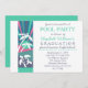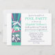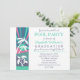 Retro look beach scene look Graduation Party design. Features a retro sunset beach scene in blue, teal and pink with palm trees and a turtle. Great for pool and beach parties. Design by Holiday Hearts Designs (rights reserved).
