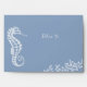 Seaside on the beach fun striped navy blue and white playful unique wedding invitation return address personalized envelopes featuring hand drawn starfish and ocean corals, and a chic whimsical handwritten calligraphy script. +++++++ All colors are editable. +++++++++ Suitable for casual trendy beach coastal summer destination weddings.