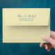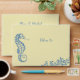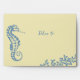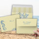 Seaside on the beach fun striped citrus yellow and blue playful unique wedding invitation return address personalized envelopes featuring hand drawn starfish and ocean corals, and a chic whimsical handwritten calligraphy script. +++++++ All colors are editable. +++++++++ Suitable for casual trendy beach coastal summer destination weddings.
