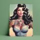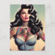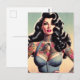 Retro Beauty Tattooed Pin up Postcard