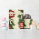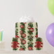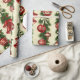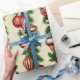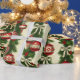 This Christmas wrapping paper features a repeating pattern of classic holiday decorations with a distinctly vintage aesthetic, set against a slighty aged off-white background.