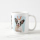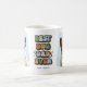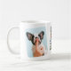 Treat a dog owner to this cool retro pet coffee mug featuring the saying 'BEST DOG DAD EVER' in a multi-colour vintage 60s font, bold white stars, 2 photos of the cute dog, and their name. This personalised photo mug would make the perfect fathers day gift or for someones birthday!