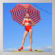 Retro bikini model/red stripe parasol poster