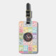 This retro bingo luggage tag has 12 bingo player cards all in retro layout and colour. The are also inked with black marks with three atomic symbols. Super fun and colourful design that is perfect for any bingo lover. Personalise the front of the luggage tag with your surname and initial. On the back add your contact information. You can make the bingo pattern larger or smaller in this tag.