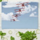 Vintage biplane art reminiscent of the twenties, thirties, forties, retro art. Formation flight of biplanes in the bright blue sky.