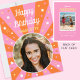 Say "Happy Birthday" with this retro style birthday card, including a personalised name and two photographs. A fun design for family, kids, friends or pets! Colourful palette of pink, orange and white.