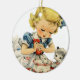 Retro Birthday Girl Cake Cat Children Artwork Ceramic Ornament